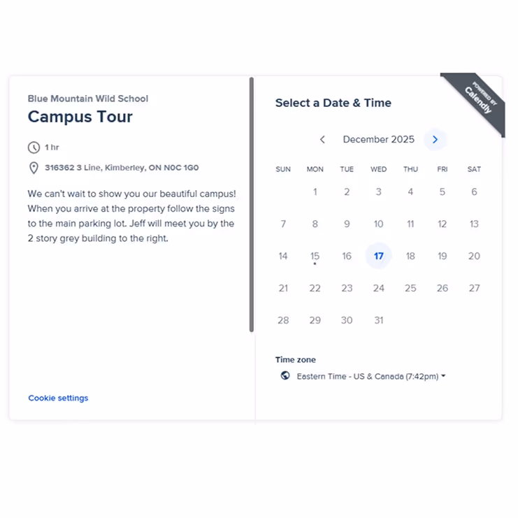 Select an available time that works best with your schedule, enter your details, and book your tour.